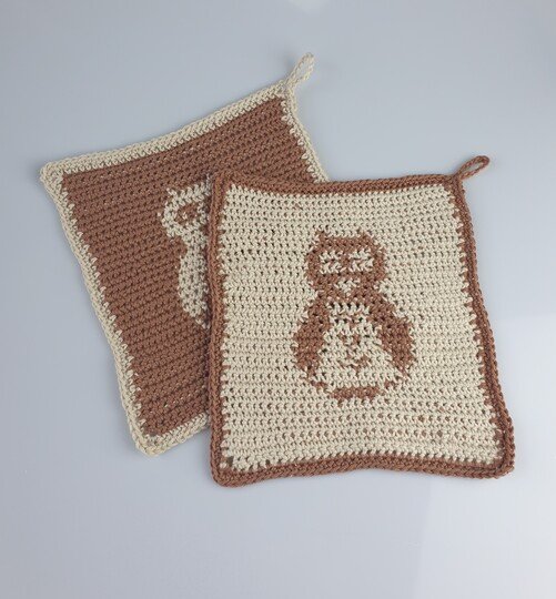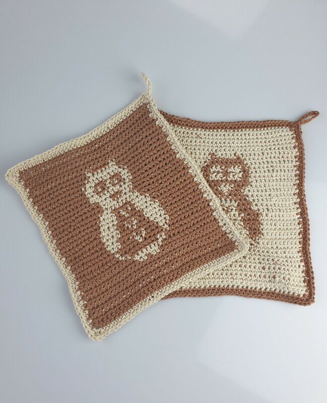 Dies ist eine Anleitung für ein Eulen Topflappen, Küchentuch, Abwasch Tuch.