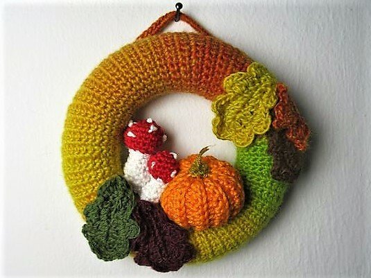 Eine kleine, feine Herbstdekoration: Dieser Minikranz hat nur 12 cm Durchmesser und kann als Tür- oder Fensterdekoration oder Wandschmuck dienen. Er lässt sich schnell und einfach aus wenigen Wollresten nacharbeiten.