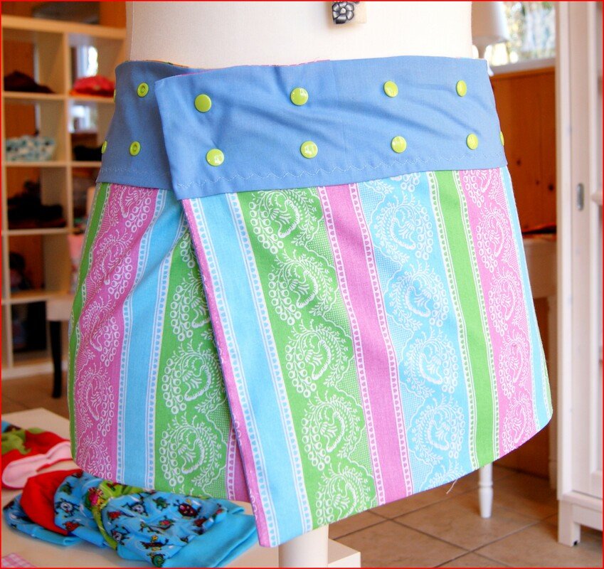 Der Wickelrock wächst mit und ist von kleinen bis großen Größen und Kindern zu tragen.