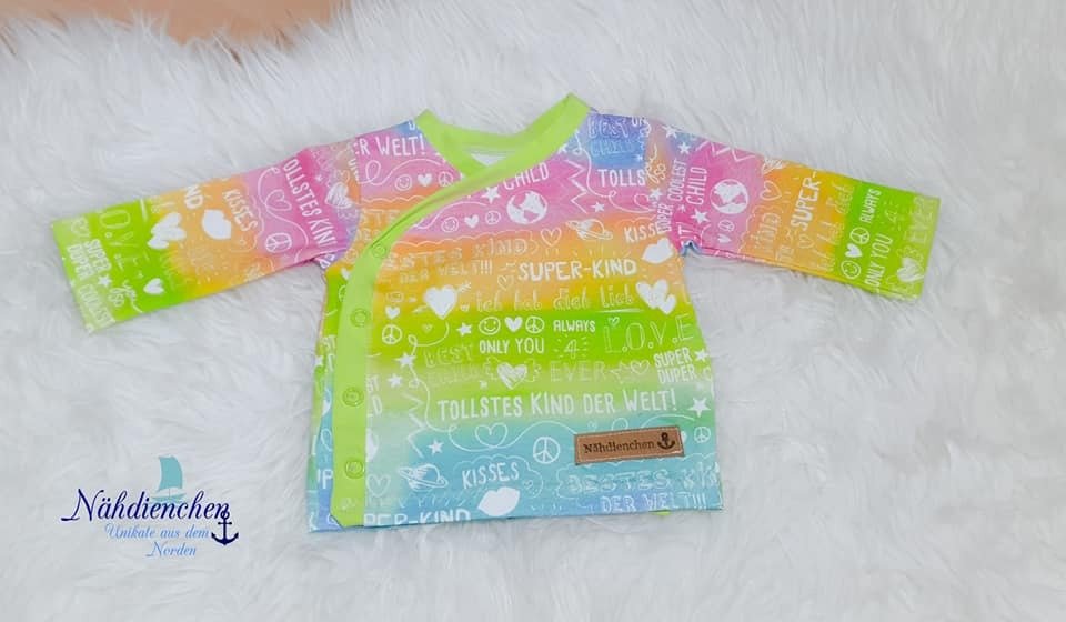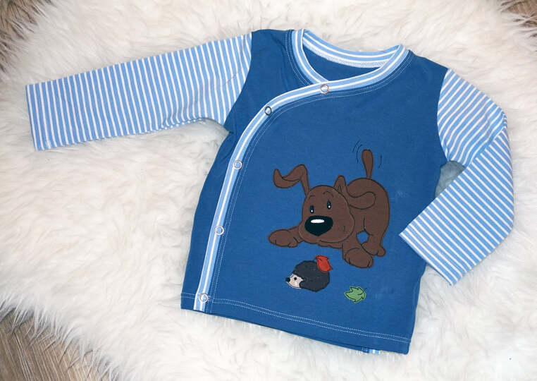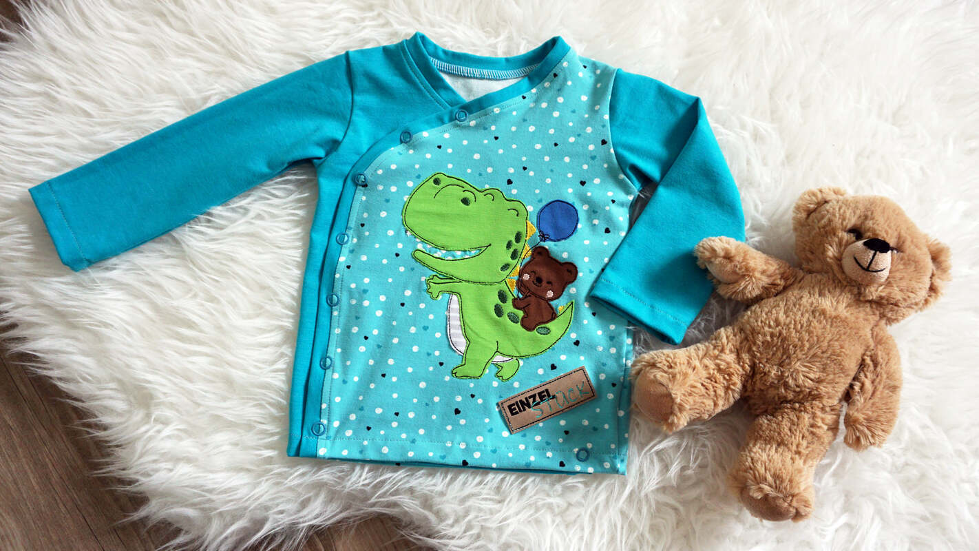 Miniklein und superniedlich: das Wickelshirt Quentin kannst du für alle kleinen Erdenbürger von Gr. 50 – 80 jeweils in Einzelgrößen nähen.