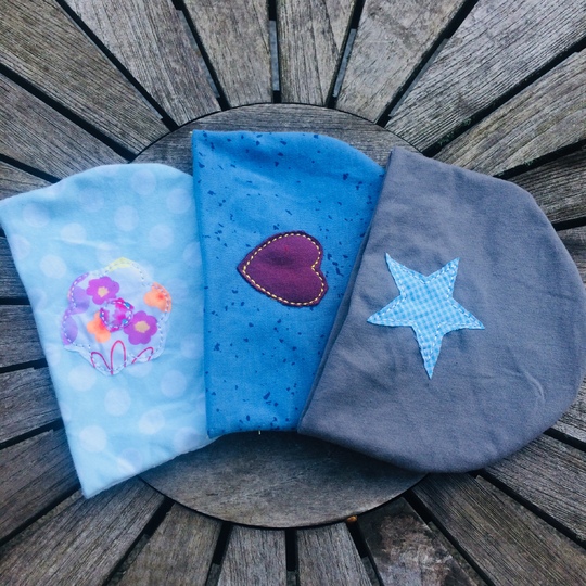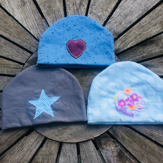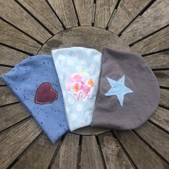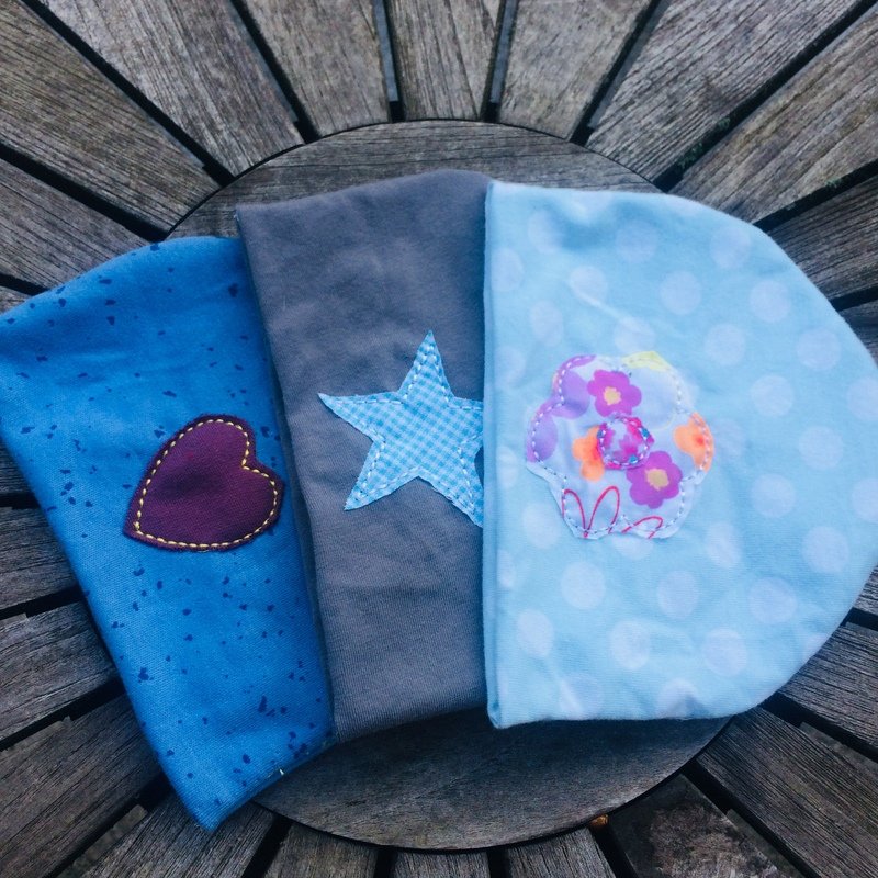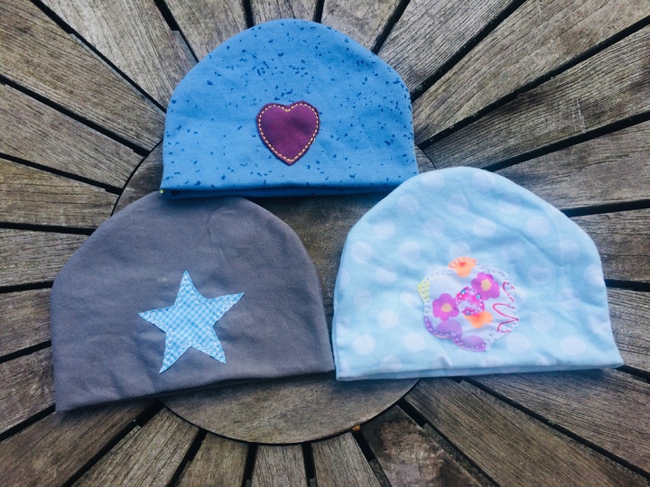 Puppen-Mütze in 3 verschiedenen Motiven (Herz, Stern, Blume) im Set als ITH-Datei
