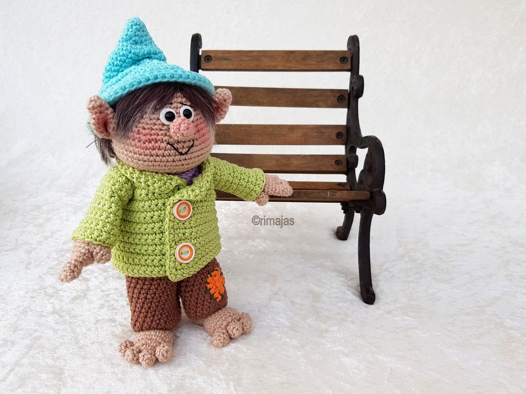 In der Anleitung wird beschrieben, wie du den Kobold, seine Hose, sein Hemdchen und seine Jacke häkelst.