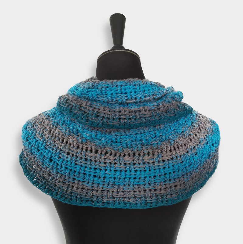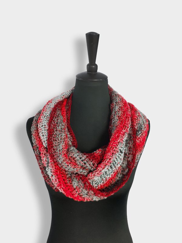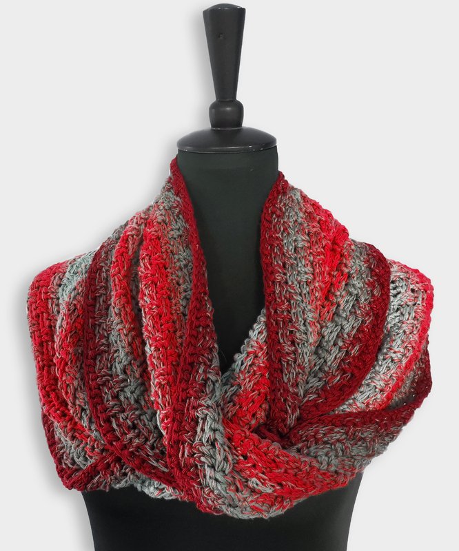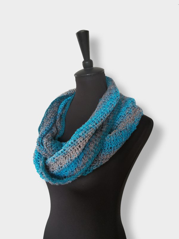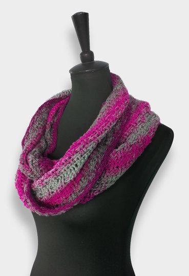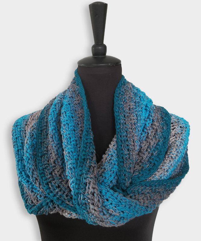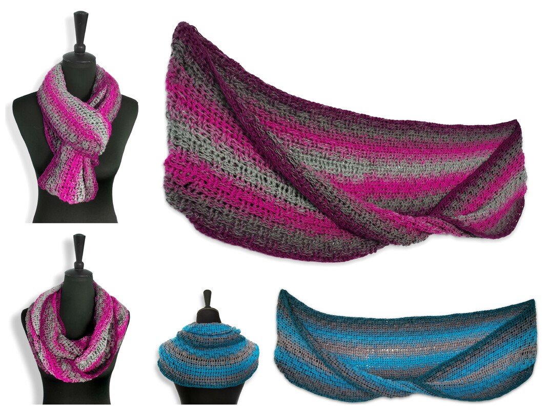 Crossy-Möbius ist ein einfacher, aber sehr effektvoller Loop mit einem tollen „Dreh“. Aufgrund seines Musters ist er beidseitig tragbar und sogar „männertauglich“.