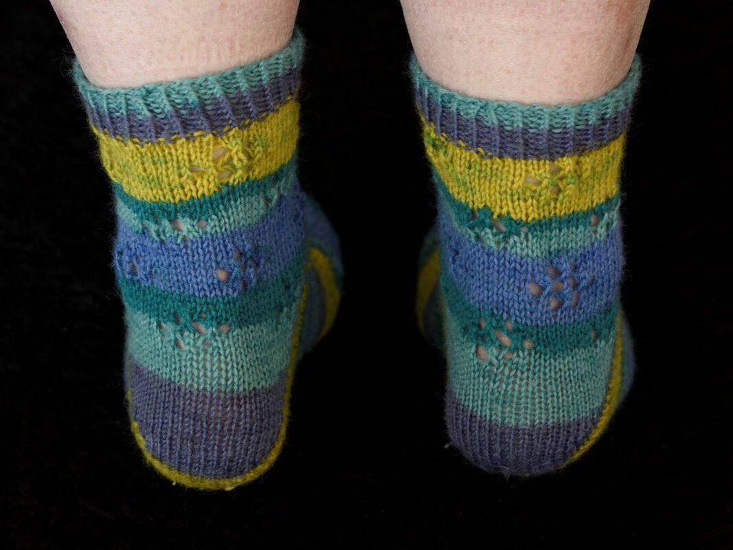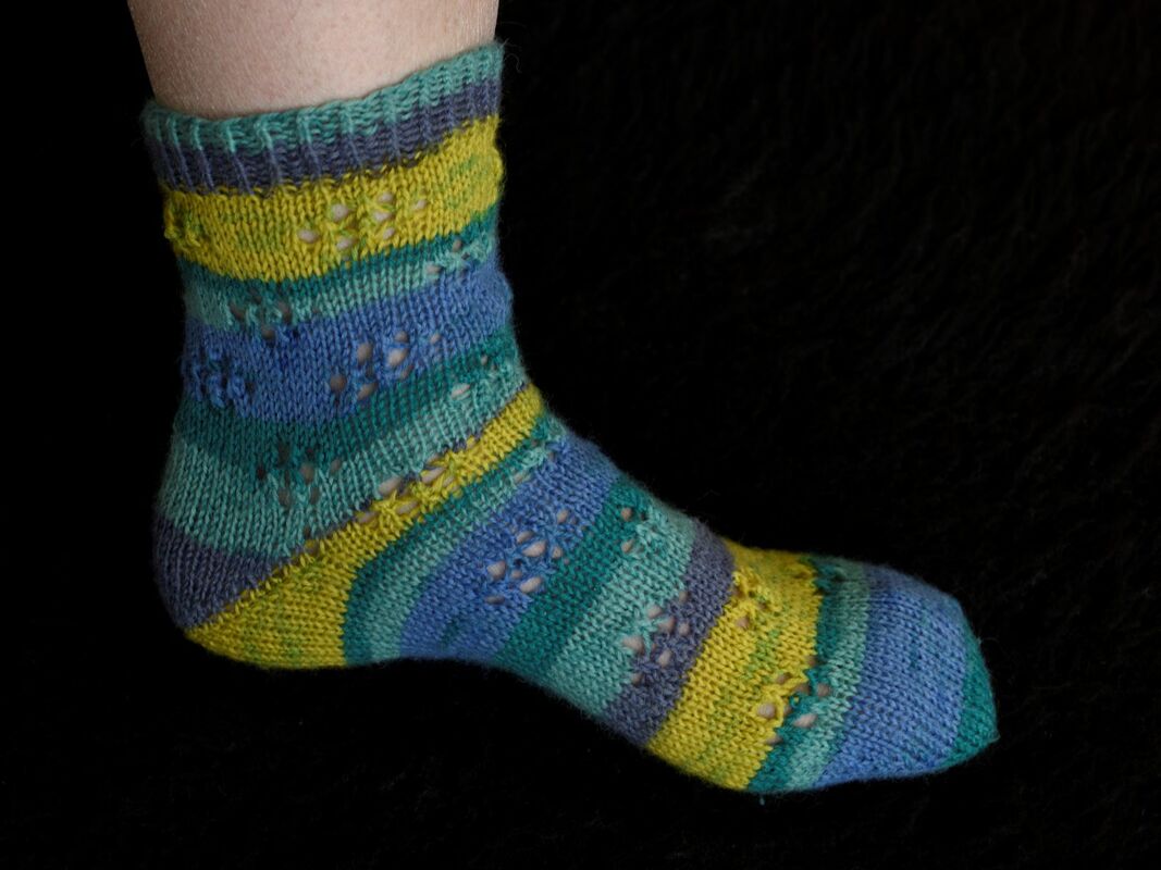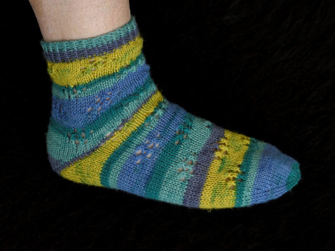 Zum Nacharbeiten solltest Du Grundkenntnisse im Stricken und Socken stricken haben, das Lochmuster ist auch für Anfänger geeignet.