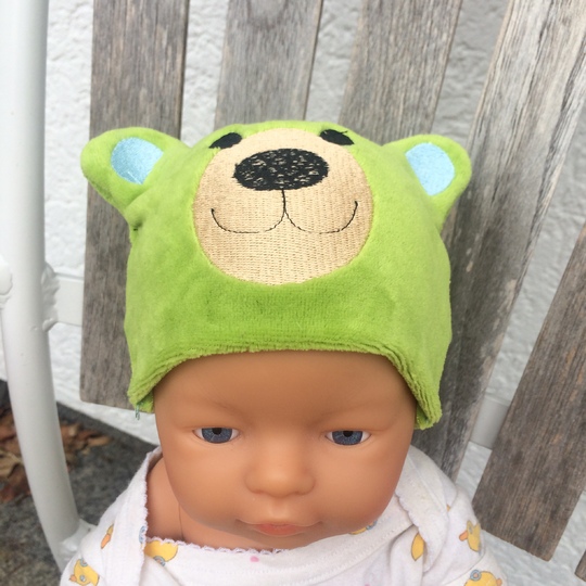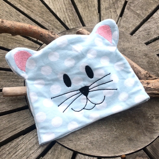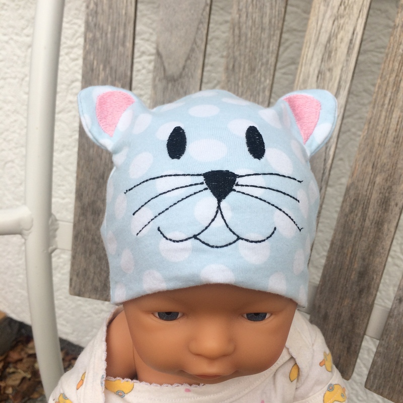 Baby-Mütze in 2 verschiedenen Motiven (Katze, Bär) im Set als ITH-Datei