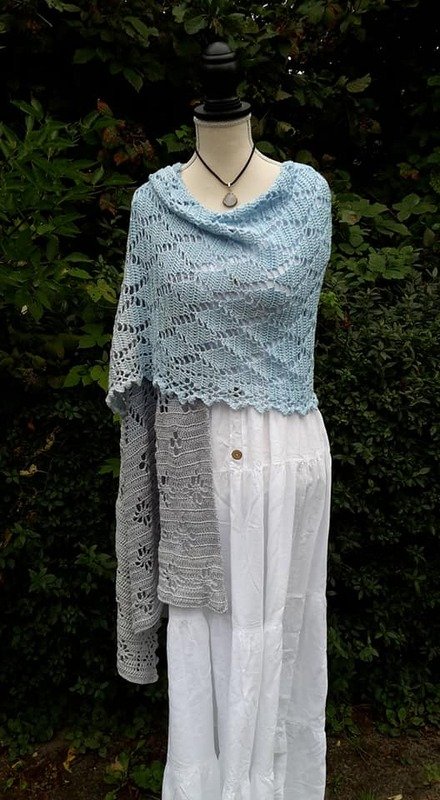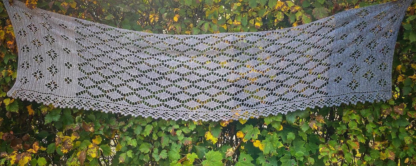 Dieses Jahr hatten wie leider keinen Workshop auf der Messe, daher gab es einen kleinen CAL. Die Anleitung besteht aus einfachen und eingängigen Mustern. Die obere Kante, sowie die beiden kurzen Seiten bleiben gerade. Ann der unteren Seite entsteht eine kleine Bordüre.