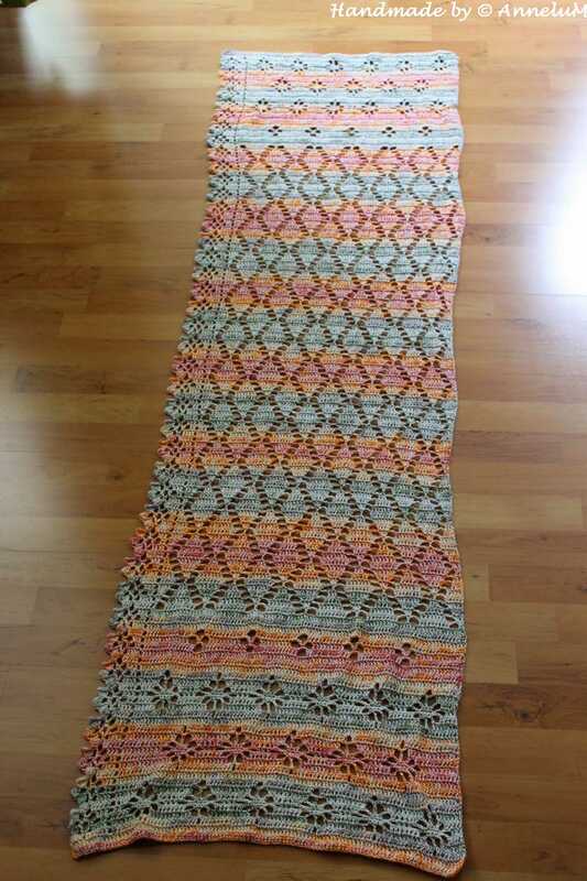 Die Stola wird von Seite zu Seite gehäkelt, so bleiben die Reihen immer schön kurz ;)