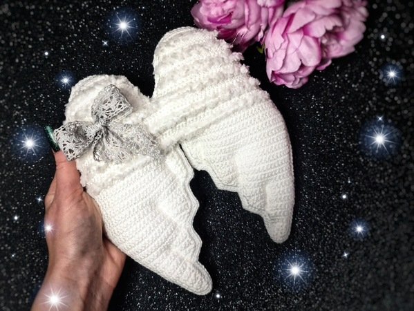 • Mit angegebenem Garn werden die Flügelt ca. 20 cm hoch.