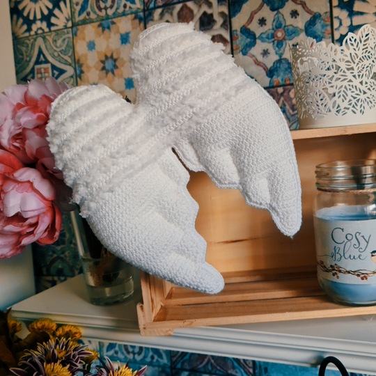 Mit angegebenem Garn werden die FFlügel ca. 20 cm hoch.