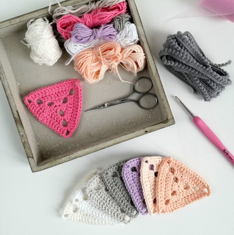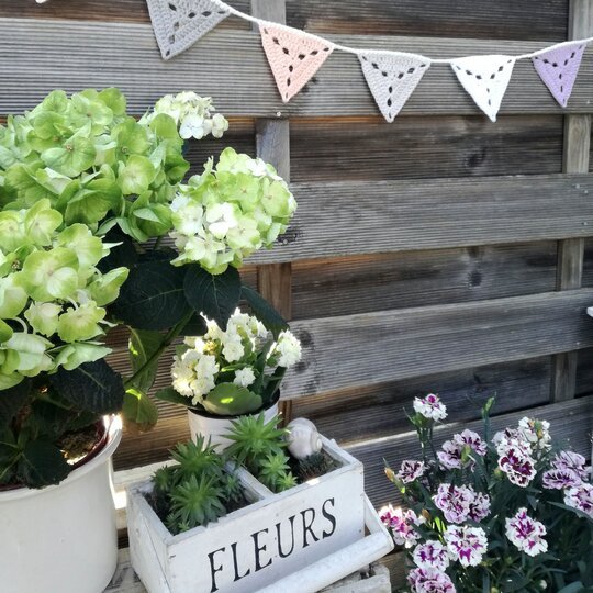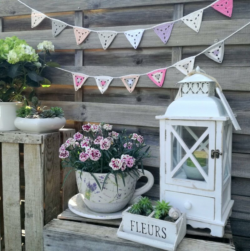 Wimpelketten sind wunderbare Dekoelemente für jedes Zimmer oder eben auch für draussen. Ich liebe sie und am liebesten in verschiedenen Farben und Formen. Hier habe ich ein Dreiecks-Granny gewählt, die sehen auch einfarbig wunderschön aus!