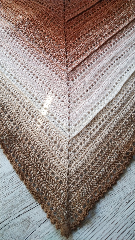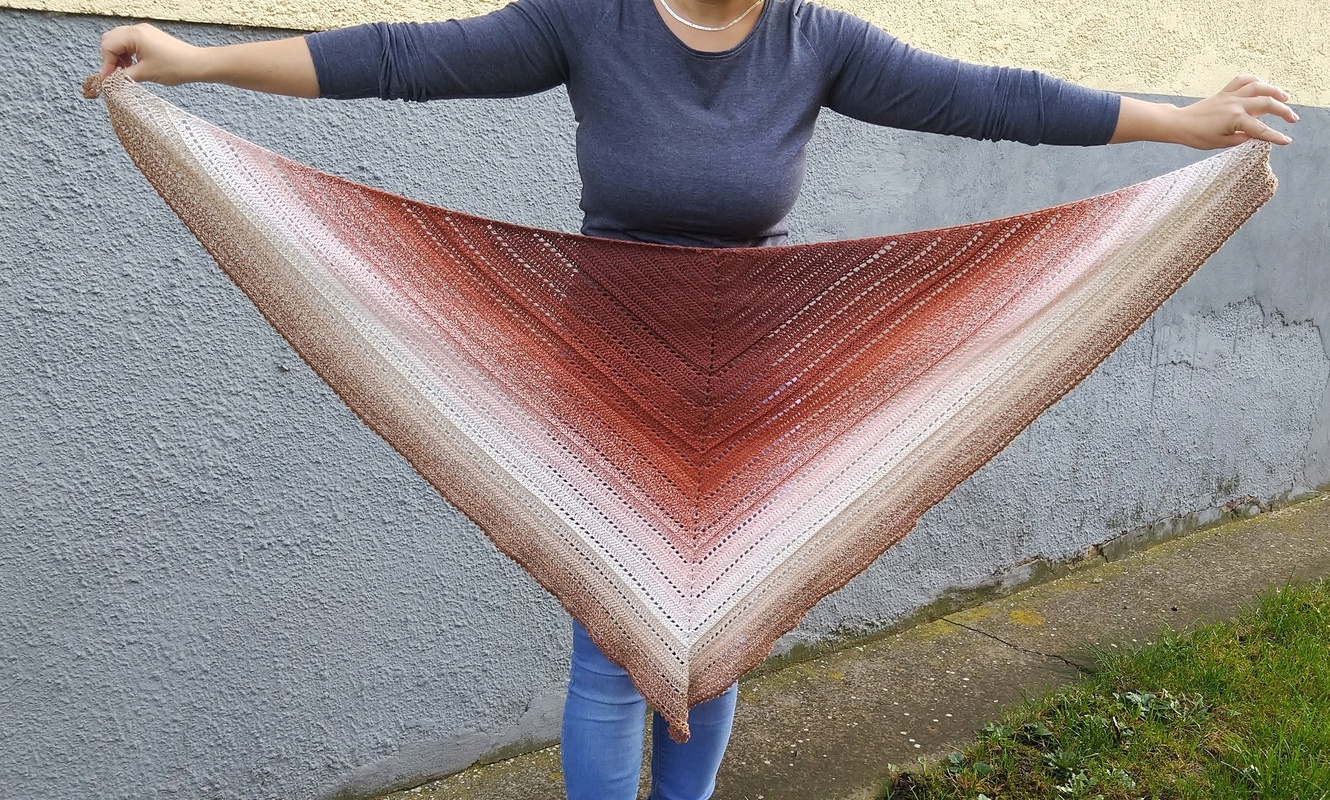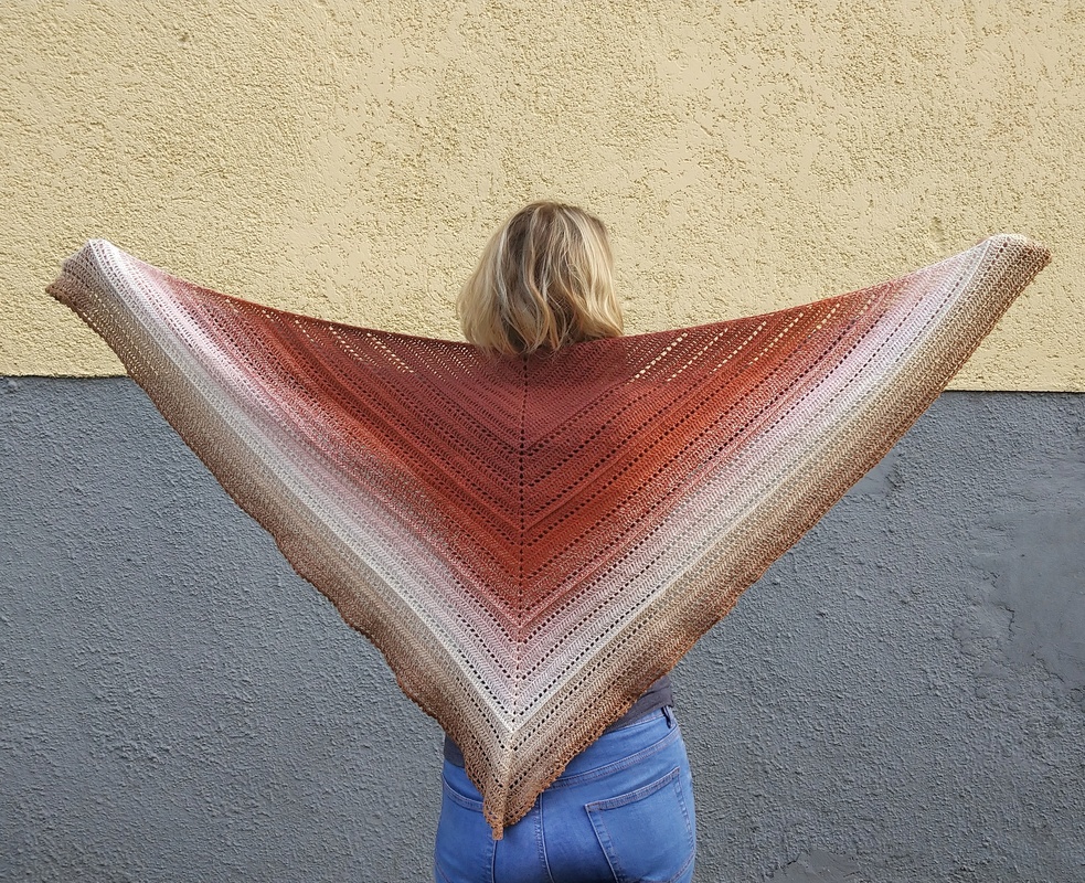 I absolutely love designing shawls recently as I love gifting them to the people I truly care about. This shawl is named after my husband’s aunt and she chose these beautiful autumn colored whirl too.