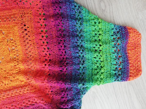 Ich empfehle einen Farbverlaufsbobbel 3- oder 4-fädig und dazu eine passende Häkelnadel.