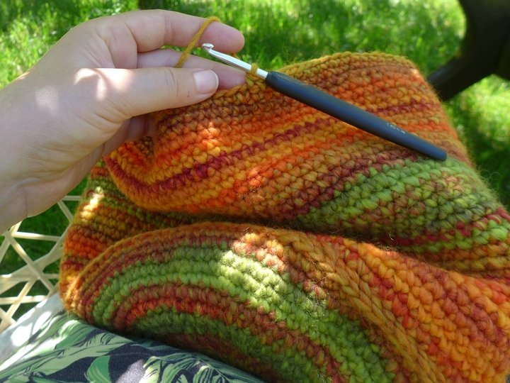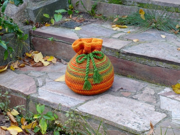 Gedacht, getan. Mein Türstopper ist bunt und fröhlich anzusehen - mit seiner Höhe von fast 30 cm und seinem Gewicht von 4 kg ist er groß und schwer genug, um jede Tür zuverlässig in der gewünschten Position zu halten. Er wird aus nur einem 150 g-Knäuel Wolle gehäkelt. Je nach Füllung kann man ihn im Haus oder draußen einsetzen.