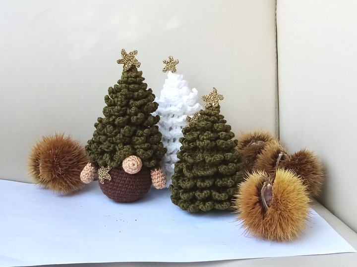 Häkeln Sie Weihnachtsbaum und Gnom.