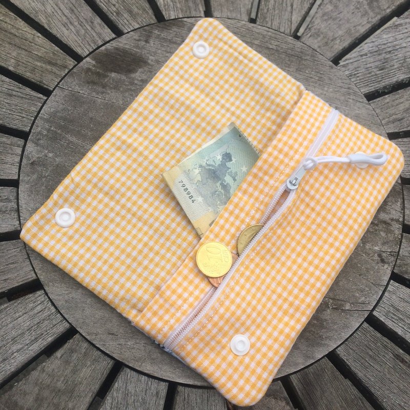 Sie hat ein Fach mit Reißverschluss für das Kleingeld und ein Fach dahinter für die Scheine.