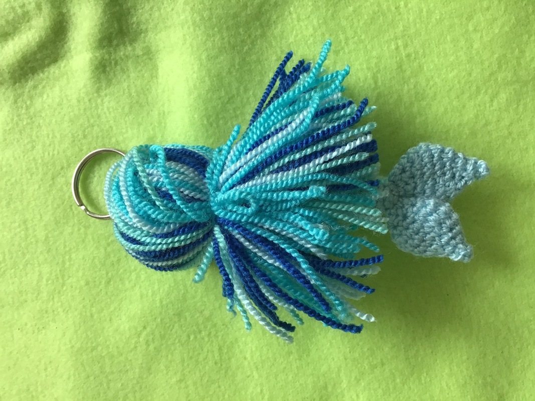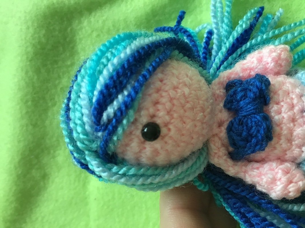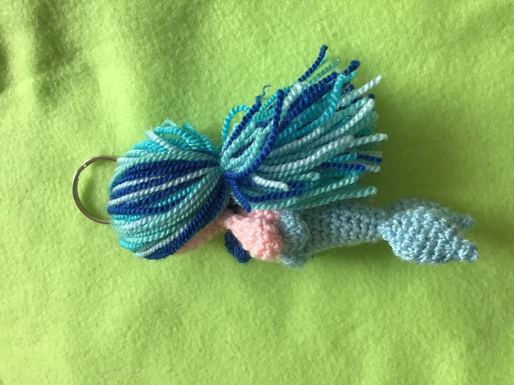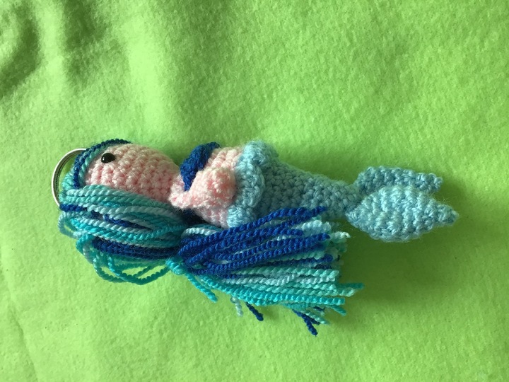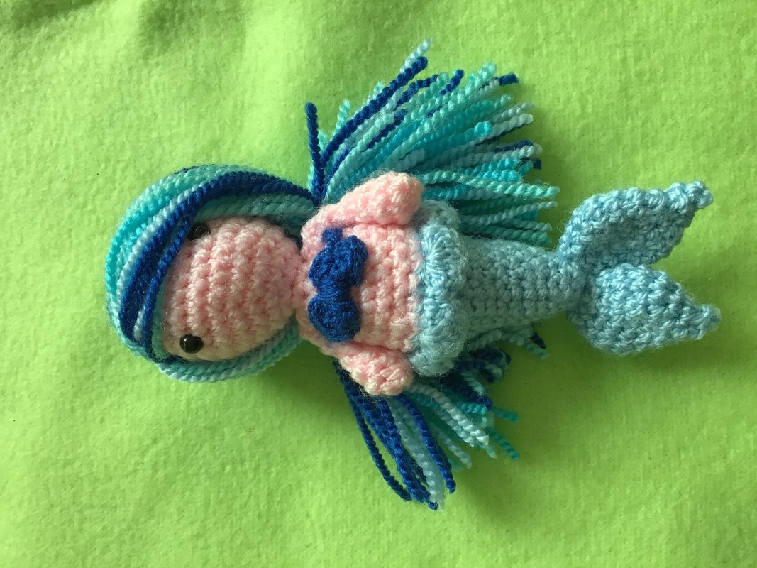 Eine fertige Meerjungfrau ist je nach Wolle 10 - 12 cm groß.