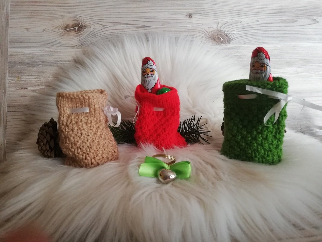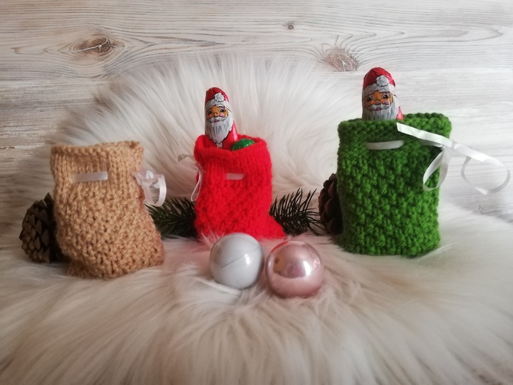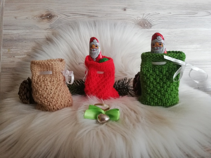 Diese Adventssäckchen kannst du in allen beliebigen Farben fertigen. Das Muster kommt richtig gut zur Geltung und in jedes Säckchen kannst du einige Leckereien verstecken.