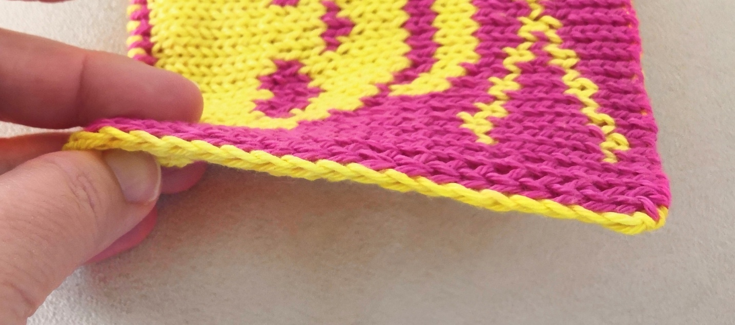 Wenn Dir das Motiv gefällt, kannst Du daraus natürlich auch Topflappen stricken, oder es als Einstrickmuster für einen Schal oder Stirnband verwenden...