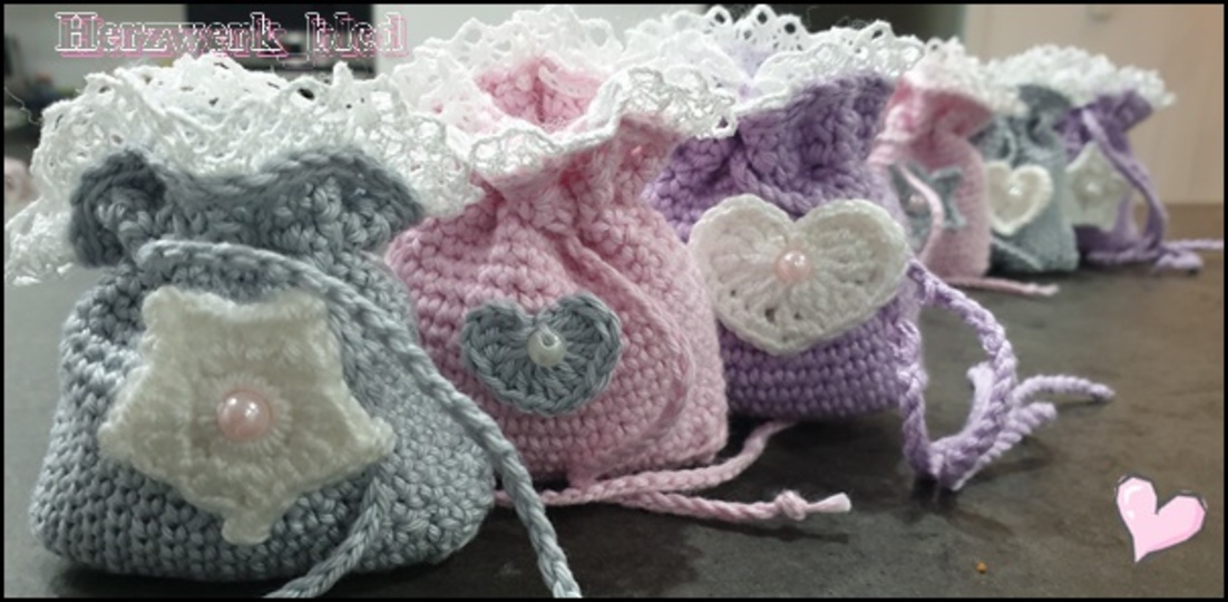 Lust auf ein nostalgisches verspieltes gehäkeltes Beutelchen für den Adventskalender, um Geldgeschenke liebevoll zu übergeben oder auch um deinen Schmuck darin zu verwahren oder um auf der Taufe die besonderen Süßigkeiten für die geladenen Gäste auf die Teller zu legen oder in weihnachtlichen Farben gearbeitet eine tolle Dekoration.