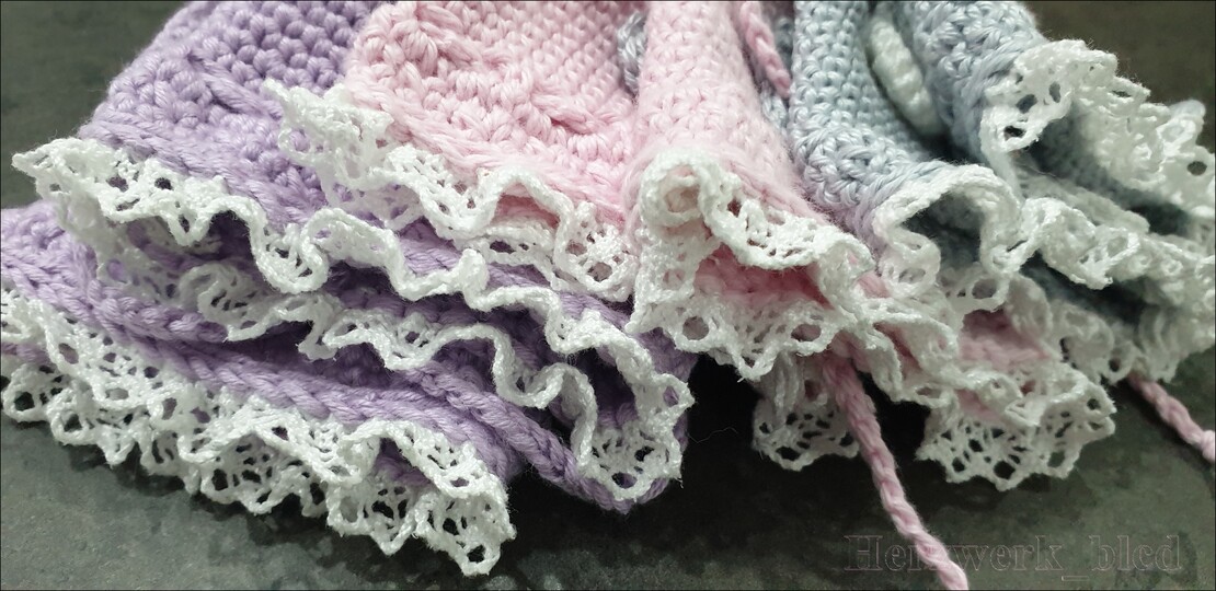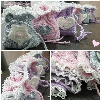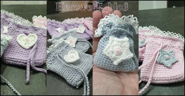 Das fertige Spitzen-Beutelchen hat die ca. Maße Breite 6 cm x Höhe ca.9 cm, wenn es mit entsprechender Nadelgröße gearbeitet wurde und in Baumwolle.