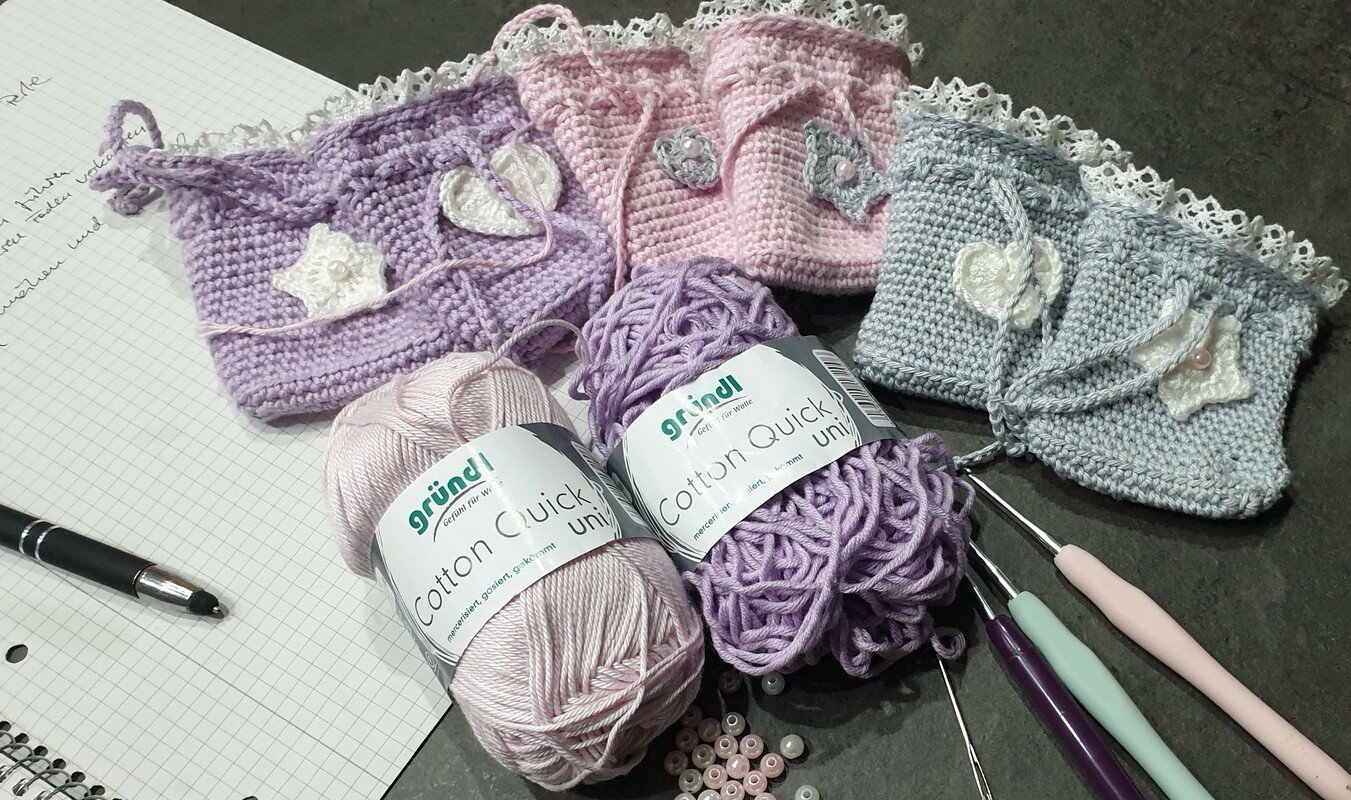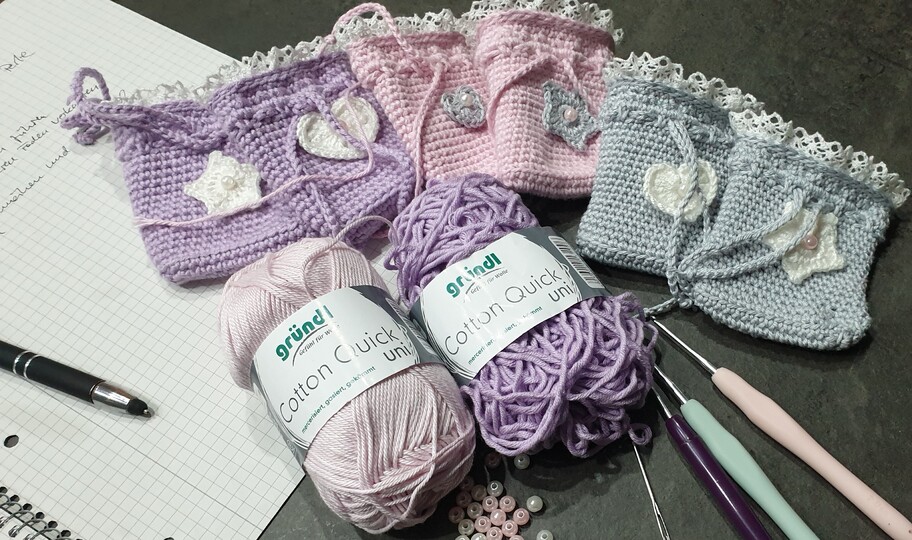 In der Anleitung wurde Gründl Baumwolle Cotton Quick verwendet, für die Nadelgröße 2,5 - 3.