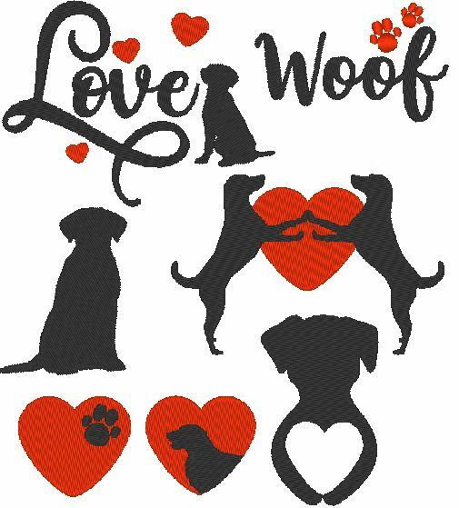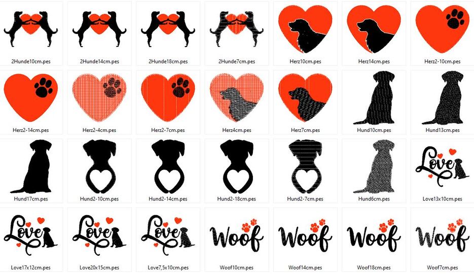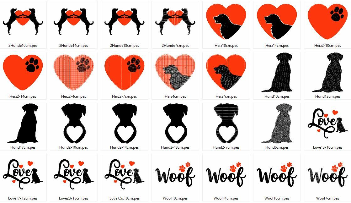 ♥ Hunde Liebe als einfache Silhouetten Stickdateien ♥
