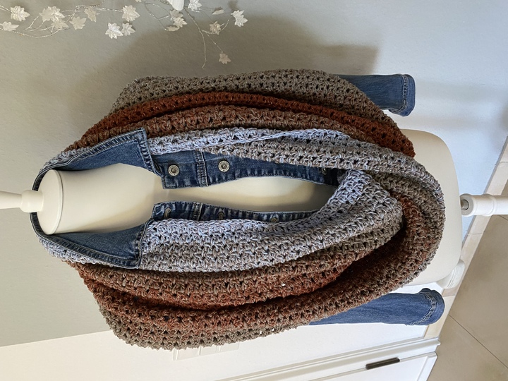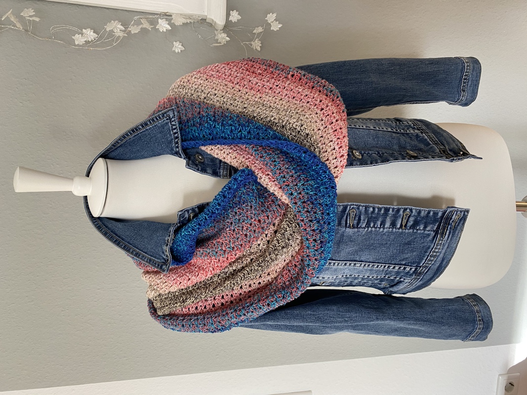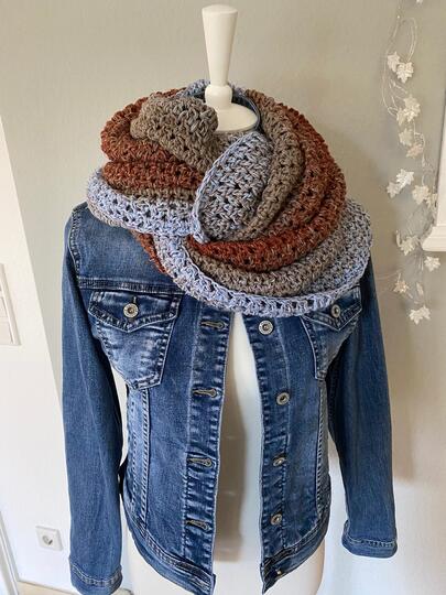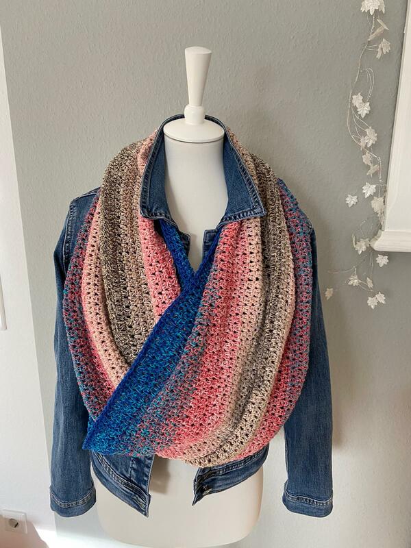 Es kann als Möbius-Loop, als einfacher Loop und als klassicher Schal gearbeitet werden.