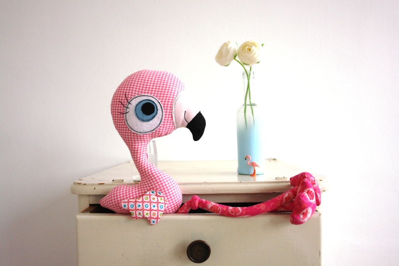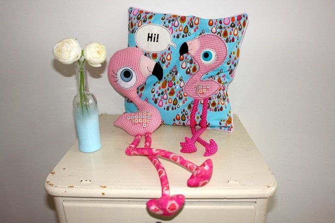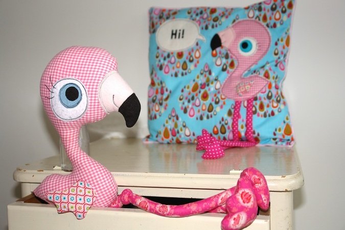 Das fertige Flamingo-Mädchen ist ca 25cm (ohne Beine) lang und 16 cm breit.