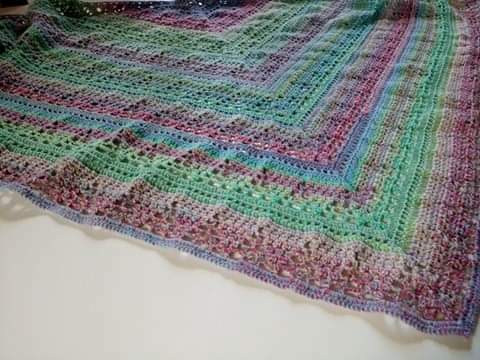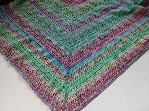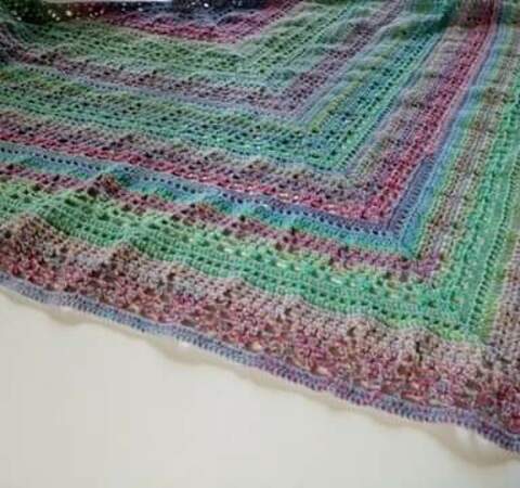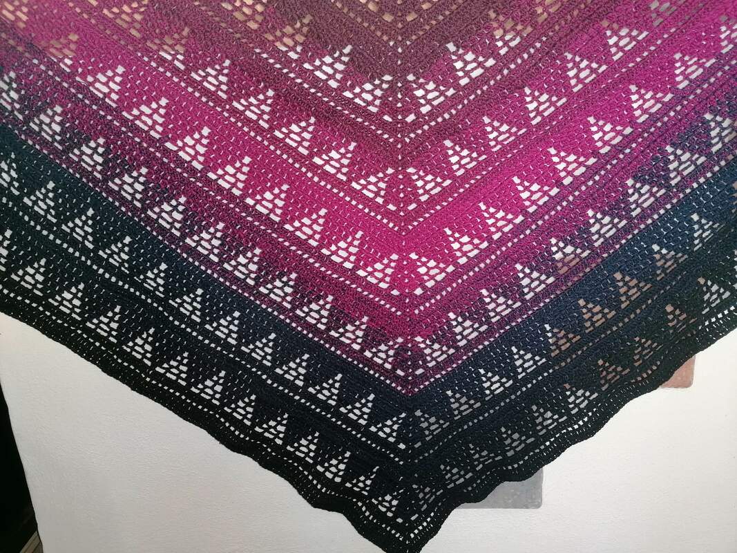 Das Tuch Helga besteht aus sich immer wiederholenden Reihen, die ein schönes Gesamtmuster ergeben.
