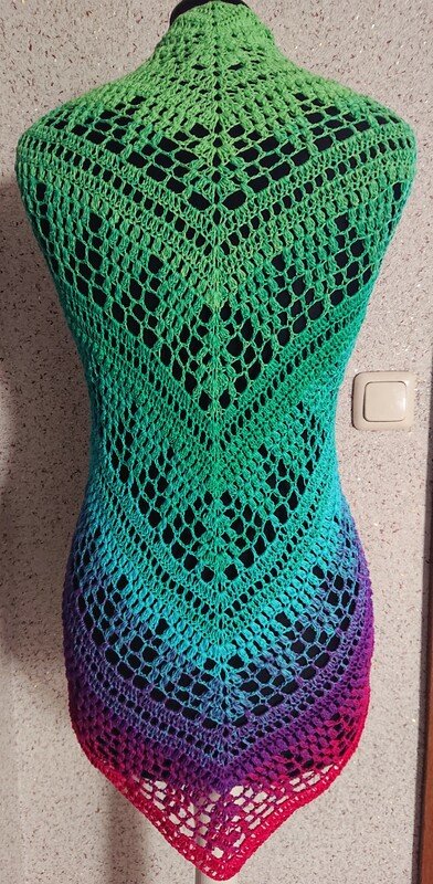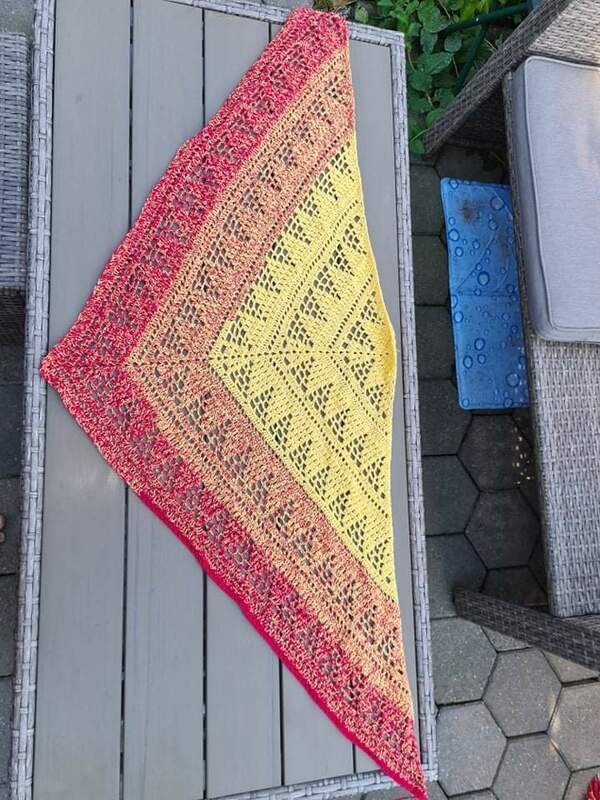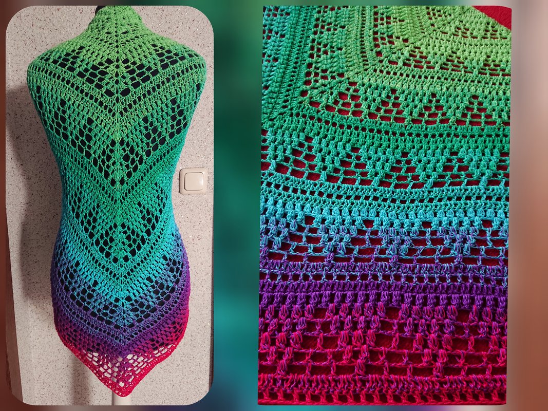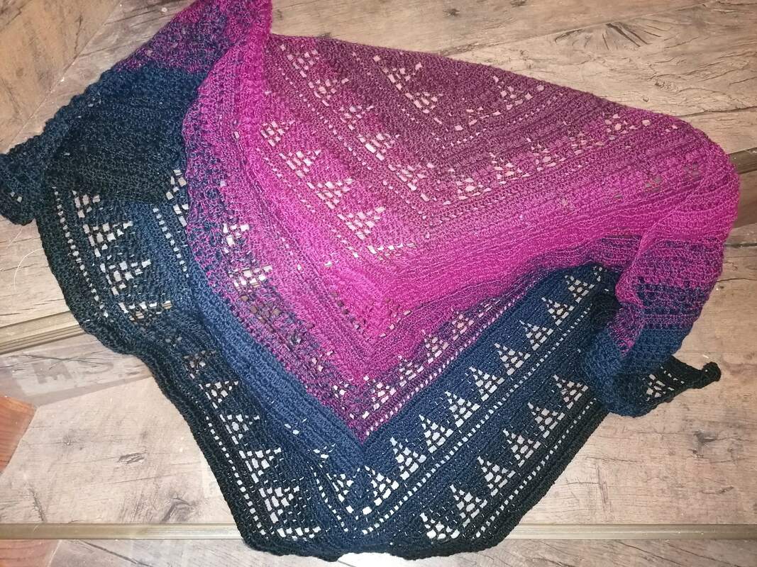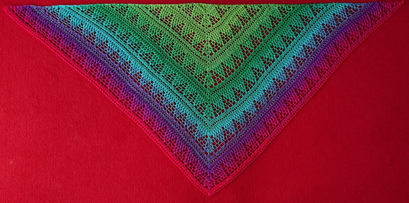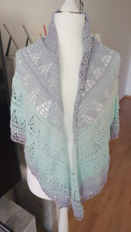 Die Anleitung zum Tuch besteht aus schriftlich ausformulierten Reihen und beinhaltet eine Häkelschrift.