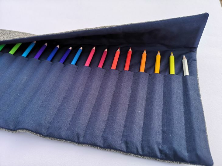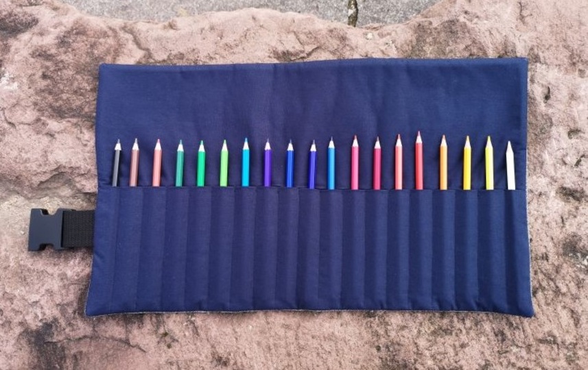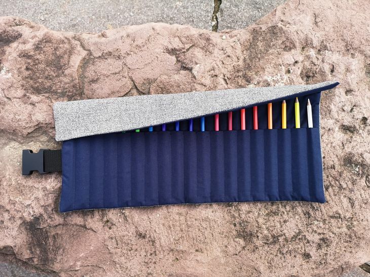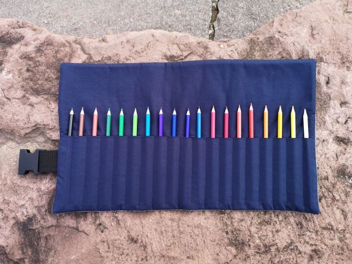 Das Rollmäppchen Gustav enthält 19 Fächer, in welche die Stifte farblich sortiert eingeschoben werden können. Die Stifterolle wird zum Schließen einmal eingeklappt, damit die Stifte nicht herausfallen können. Anschließend wird das Mäppchen 3 Mal eingeklappt und mit einer Schnalle geschlossen.