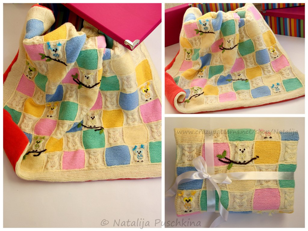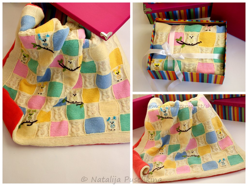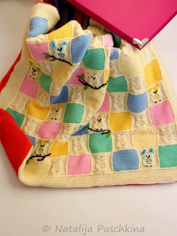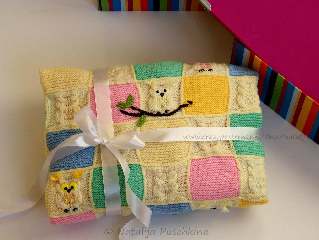 Verkauf der von Dir hergestellte Decke 'Eule' ist möglich: Du darfst die Artikel, die Du mithilfe meiner Anleitung zum Stricken von Decke gefertigt hast, in beliebiger Stückzahl gewerblich verkaufen. Bitte den Hinweis: „Angefertigt nach dem E-Book von Natalija Puschkina https://www.crazypatterns.net/de/store/Natalija“ dazusetzen.