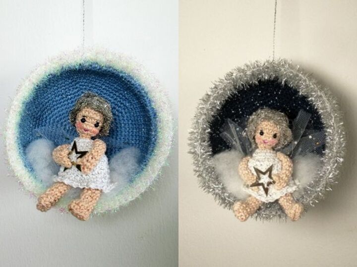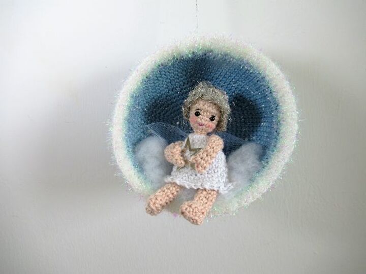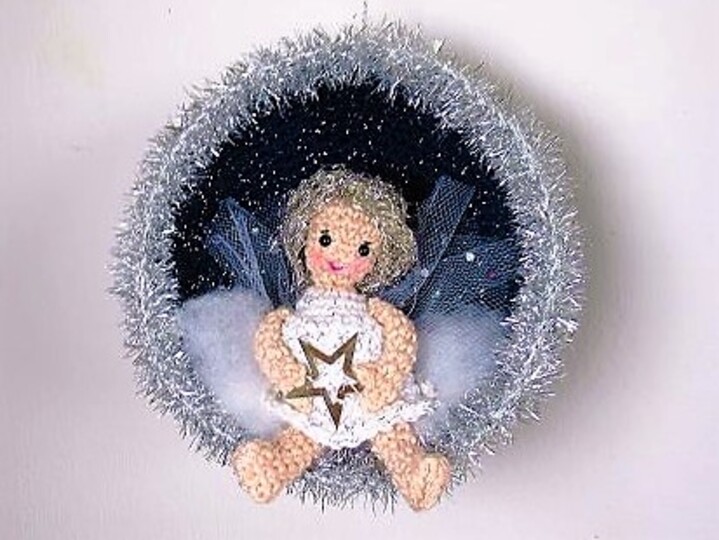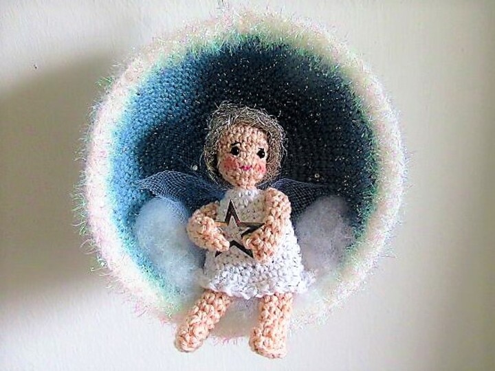 Der kleine Engel hat sich einen Stern von Himmel stibitzt und es sich auf einer Wolke in der Himmelskugel gemütlich gemacht . Häkle ihn in einer Tagversion (hellblau) oder einer Nachtversion (dunkelblau), wie es dir gefällt!