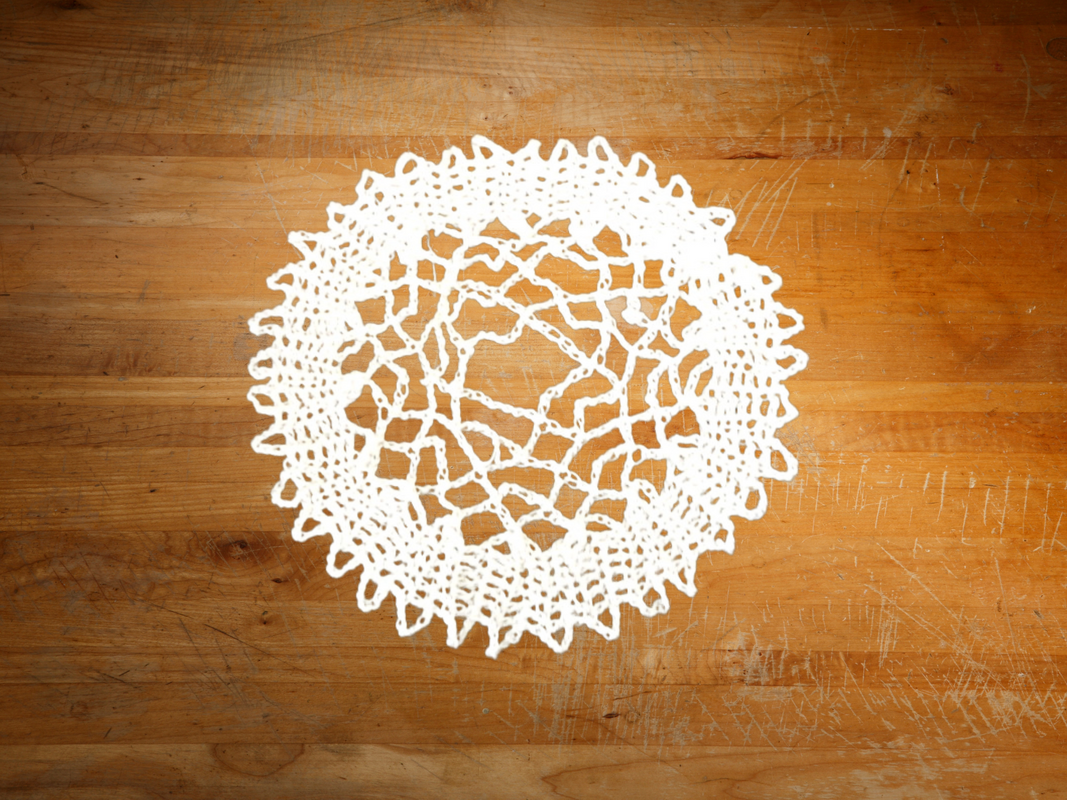 Buruhhe ist ein Deckchen, welches in Brügger Häkelei gearbeitet wird.