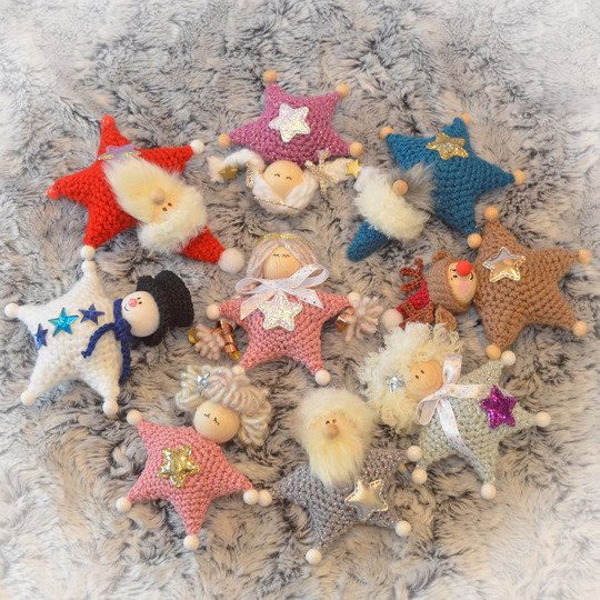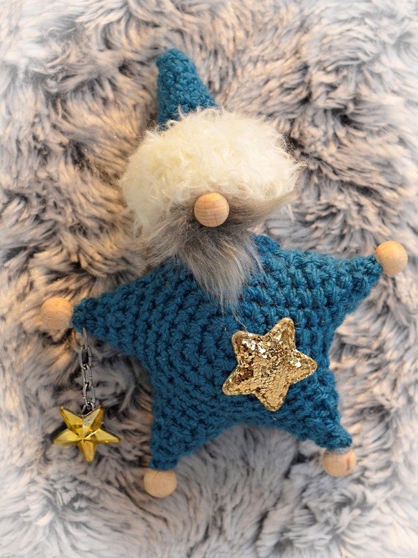 Mit dieser Anleitung zeige ich dir, wie du diese weihnachtlichen Anhänger mit Sternkörper häkeln kannst.