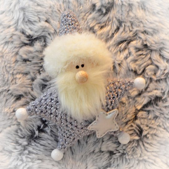 Fransen-oder Kuschelgarn in weiß für die Wichtel / Nikolaus, z.B Lenja soft, Rico fashion FUR oder billige von Tedi…