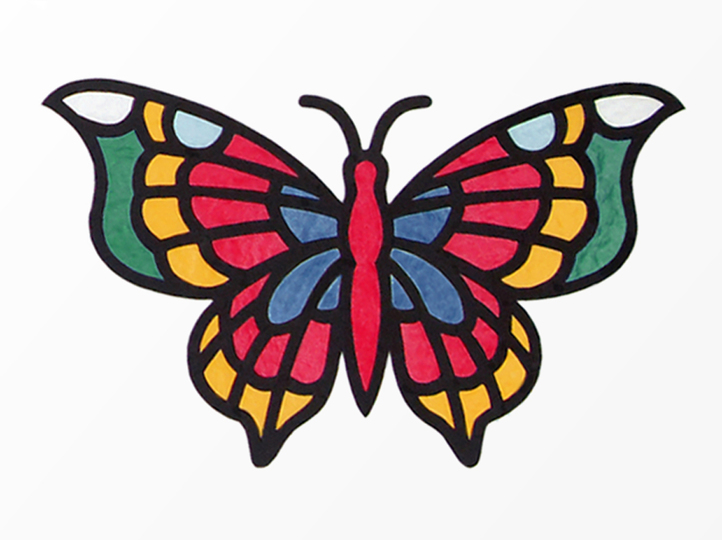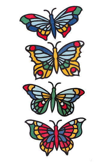 Kaum eine Insektenart ist so farblich vielfältig wie die Schmetterlinge: Von Weiß bis Schwarz durch das komplette Farbspektrum – es gibt keine Farbe, die du nicht auf den Flügeln von mindestens einer Schmetterlingsart findest. Bei diesen bunten Schmetterlingen kannst du dich entweder an die vorge-schlagene Transparentpapierfarben halten oder deine eigene Farbkombinationen kreieren.