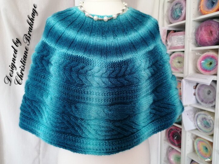 Die Pelerine ist in zwei Abschnitte gearbeitet, mit schönen Zopfmustern versehen und angenehm zu tragen.