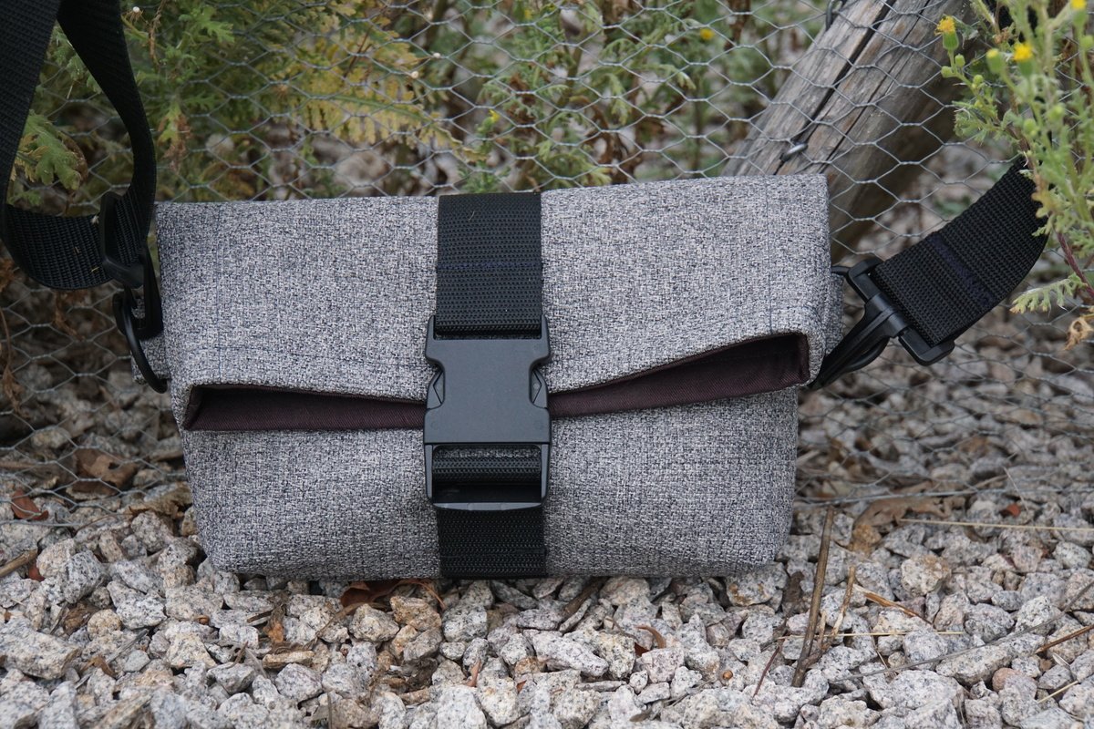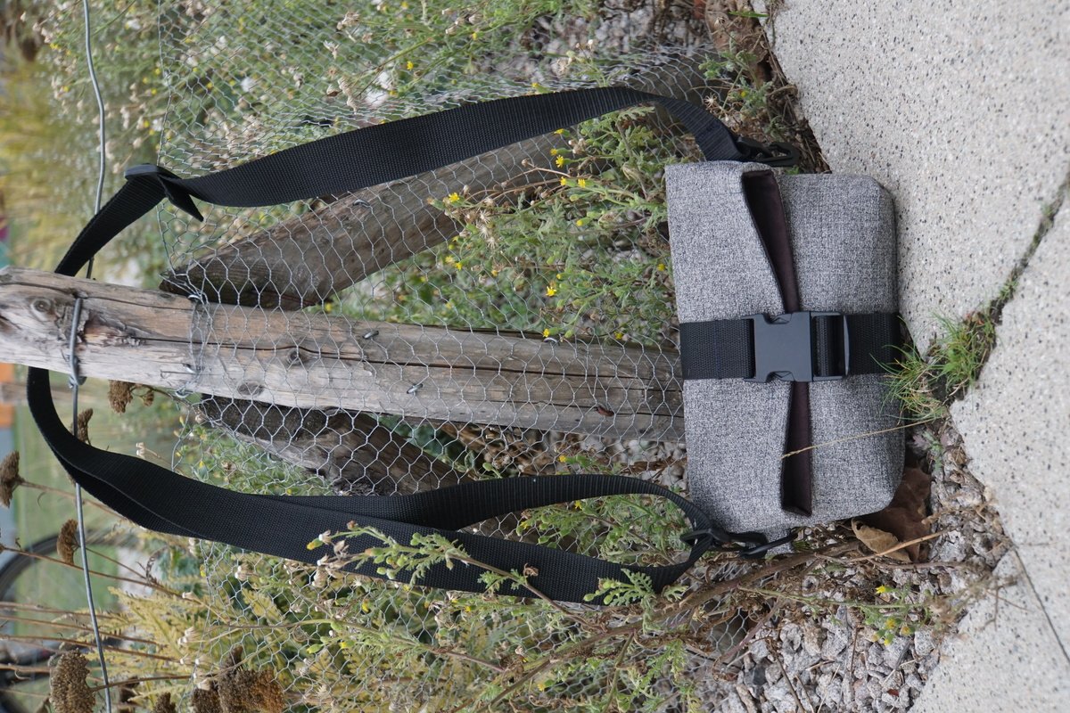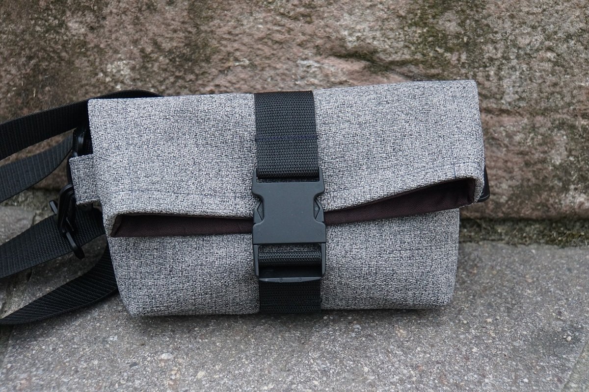 Die Rolltop Handtasche ist 15 cm hoch, 23 cm breit und 5 cm tief.