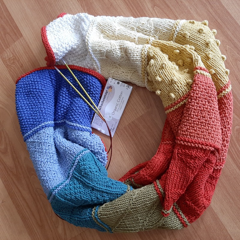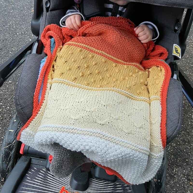 Eine wunderbare leichte Decke für den Kinderwagen oder zum einkuscheln an kühlen Sommertagen. Am Stück gestrickt mit verschiedenen Farben und Mustern. Ideal für StrickerInnen, die mal verschiedene Muster ausprobieren möchten. Es wird garantiert nicht langweilig :)