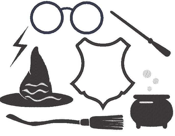 die Brille und die Wappen für Stoffapplikation der Rest als einfache Silhouetten