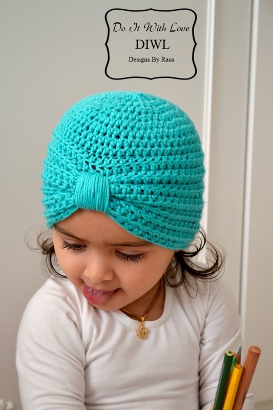 DIWL (e-book) Anleitung besteht aus professionell bebilderter Anleitung in *Deutscher und Englischer Sprache* zum Häkeln von Turban Style Mütze. Damit können Sie super schnell und einfach diese Mütze in *Größen: 3/6 M, 6/12 M, 12/18 M, Kleinkind, Kind* häkeln.