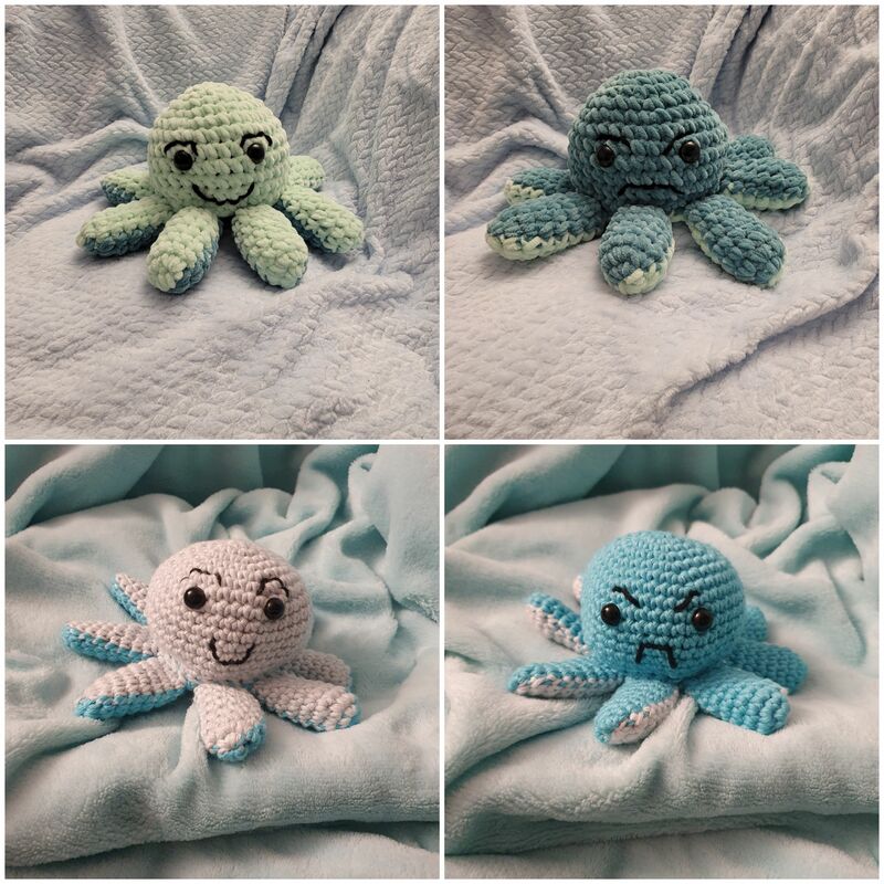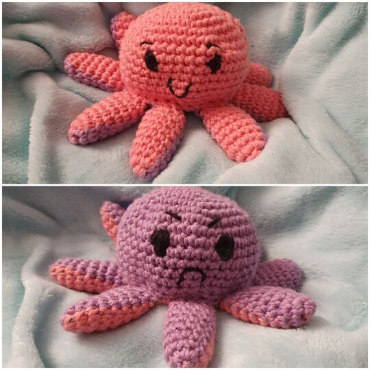 Mit diesem kleinen Oktopus kann man auch gut seine Gefühle ausdrücken - entweder der freundliche oder der böse guckende Oktopus kommt durch umkrempeln zum Vorschein.