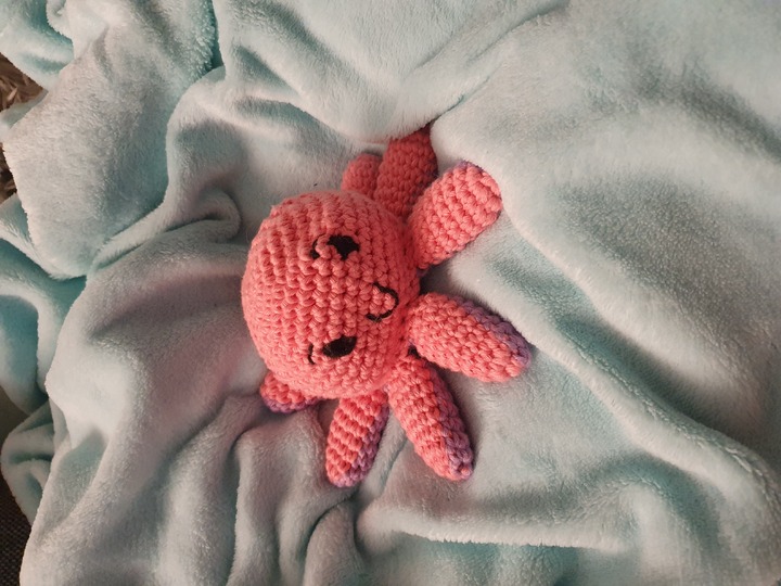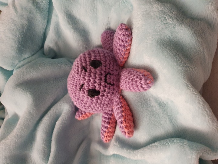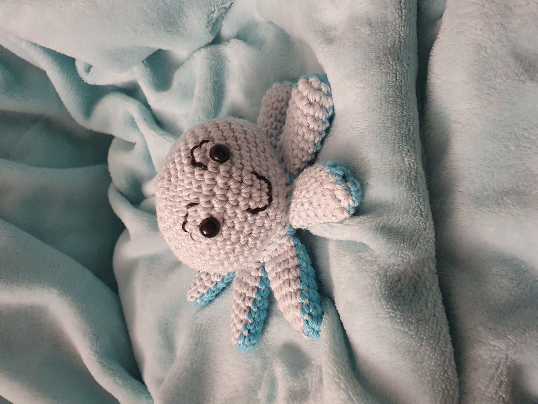 Zusätzlich habe ich den Oktopus noch einmal mit dicker Wolle gehäkelt - Himalaya Dolphin Baby und Nadel 5,5. so ist der Oktopus ca. 20 - 25cm hoch geworden. Die Anleitung kann genauso mit dieser Wolle gehäkelt werden! :)