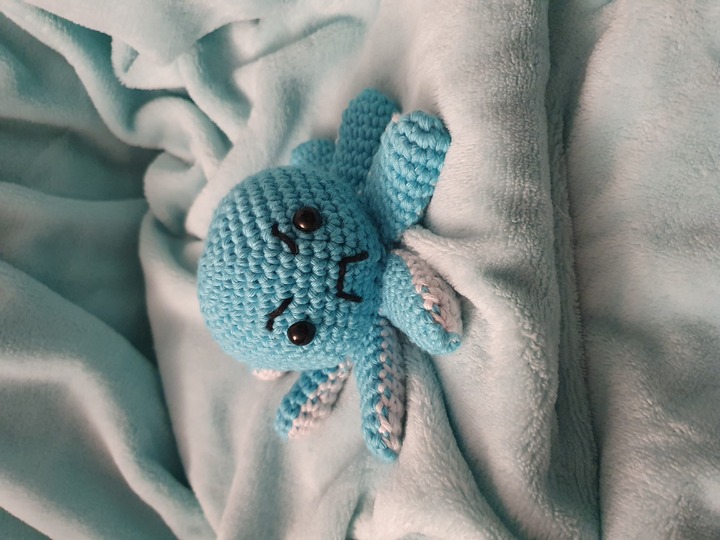 Auf insgesamt 5 Seiten bekommst du eine sehr genaue Schritt für Schritt Anleitung und vielen Bildern, die beispielsweise das Häkeln der Tentakel vereinfacht.