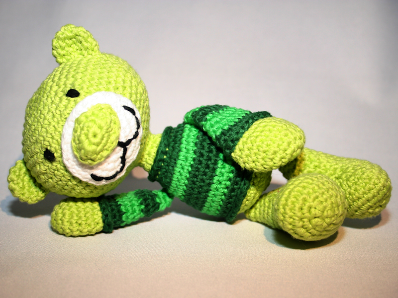 Diesen Teddy haben meine Kleinen mal in ihren Oster-Nestern gefunden. :) Muss ja nicht immer ein Häschen sein... Sieht toll aus in ähnlichen Farben. Aber auch in kunterbunt ein garantierter Hingucker.Einfach und schnell zu häkeln und danach heiß geliebt. :)