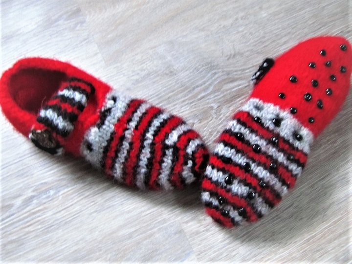 Die gefilzten Schuhe mit Riemchen sin mal was Anderes!