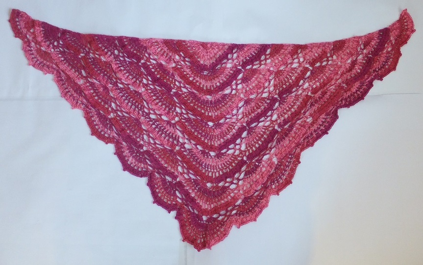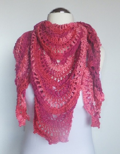 Das Häkeltuch kann mit einem Mikrofasergarn (z.B. Tahiti Batik), Schurwollgarn (Mille Colori Baby), Baumwollgarn oder Baumwoll-Mischgarn gehäkelt, dann ist es schöne luftig und leicht. Außerdem eignet sich auch Sockenwolle 4 oder 6-fach. Hier würde ich jedoch eine Merino-Sockenwolle empfehlen, da diese dann schön weich ist. Für die abgebildeten Dreieckstücher sind Wollangaben in der Anleitung enthalten.