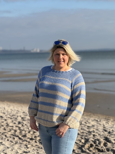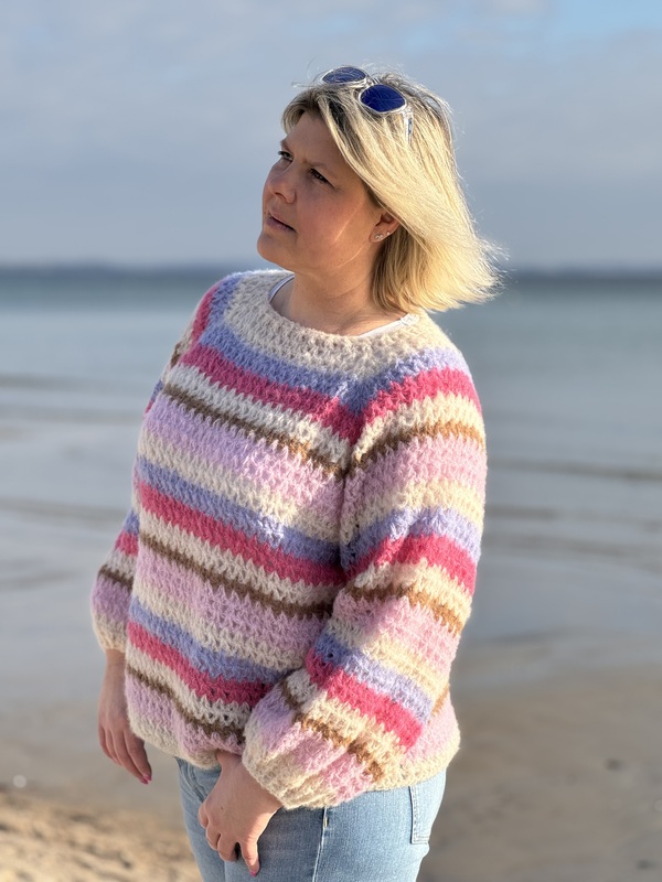 Ein moderner Oversize-Pullover. Richtig kuschelig und lässig im Design. Der Pullover kann mit oder ohne Steh-/Rollkragen gearbeitet werden. Einfach ein echter Hingucker.