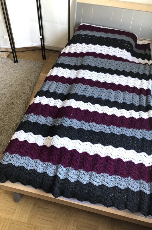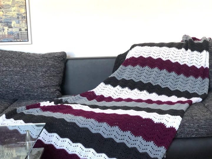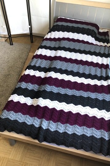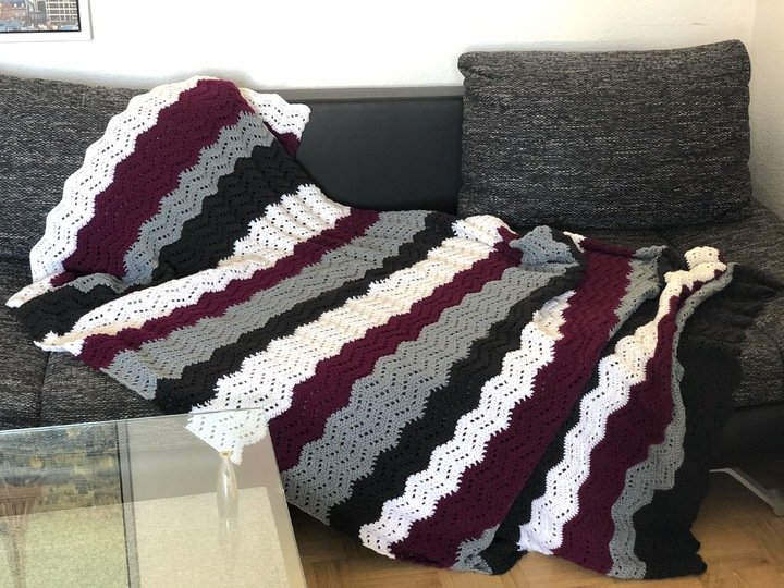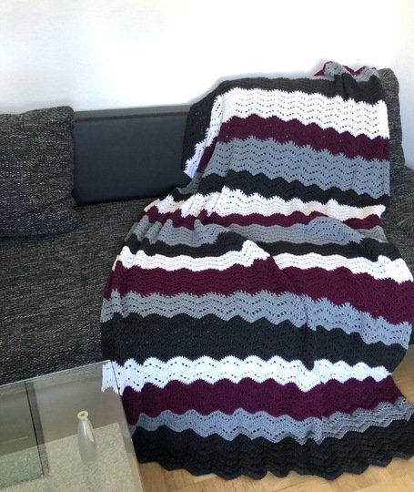 Die Decke lässt sich in vielen Größen arbeiten. Passende Kissen sehen sicher auch gut aus.